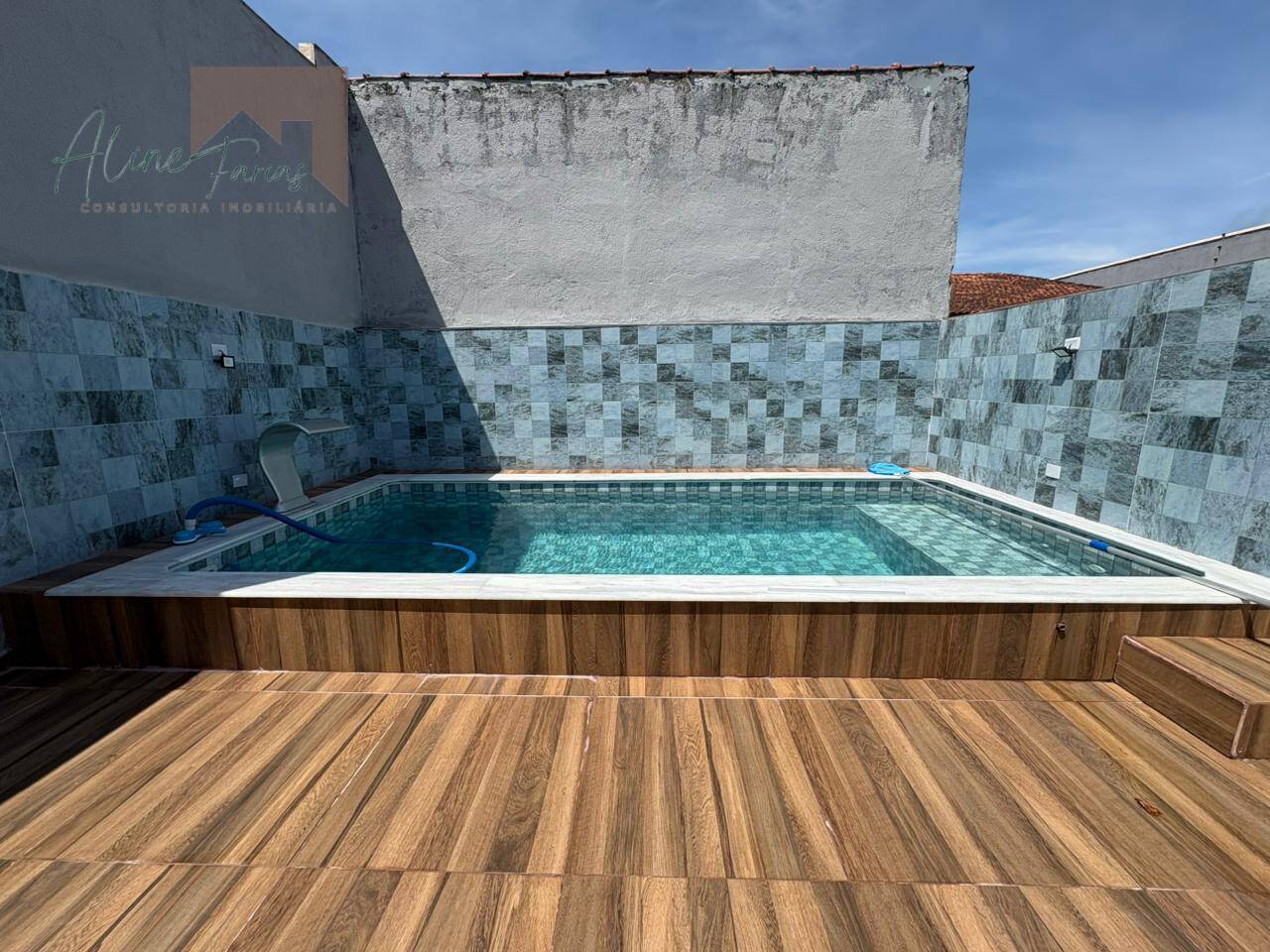 Com 90 m² de área construída em terreno de 180 m², o imóvel conta com 2 dormitórios, sendo 1 suíte, além de banheiro social com ótimo acabamento. A cozinha se destaca pelo balcão em mármore e excelente iluminação natural, integrada à lavanderia funcional com acesso externo por porta de correr, garantindo praticidade no dia a dia. A garagem oferece 2 vagas, sendo 1 coberta. Na área externa, o imóvel dispõe de piscina com cascata e iluminação, espaço com churrasqueira, além de chuveiro e lavabo externo, ideal para momentos de lazer e convivência.