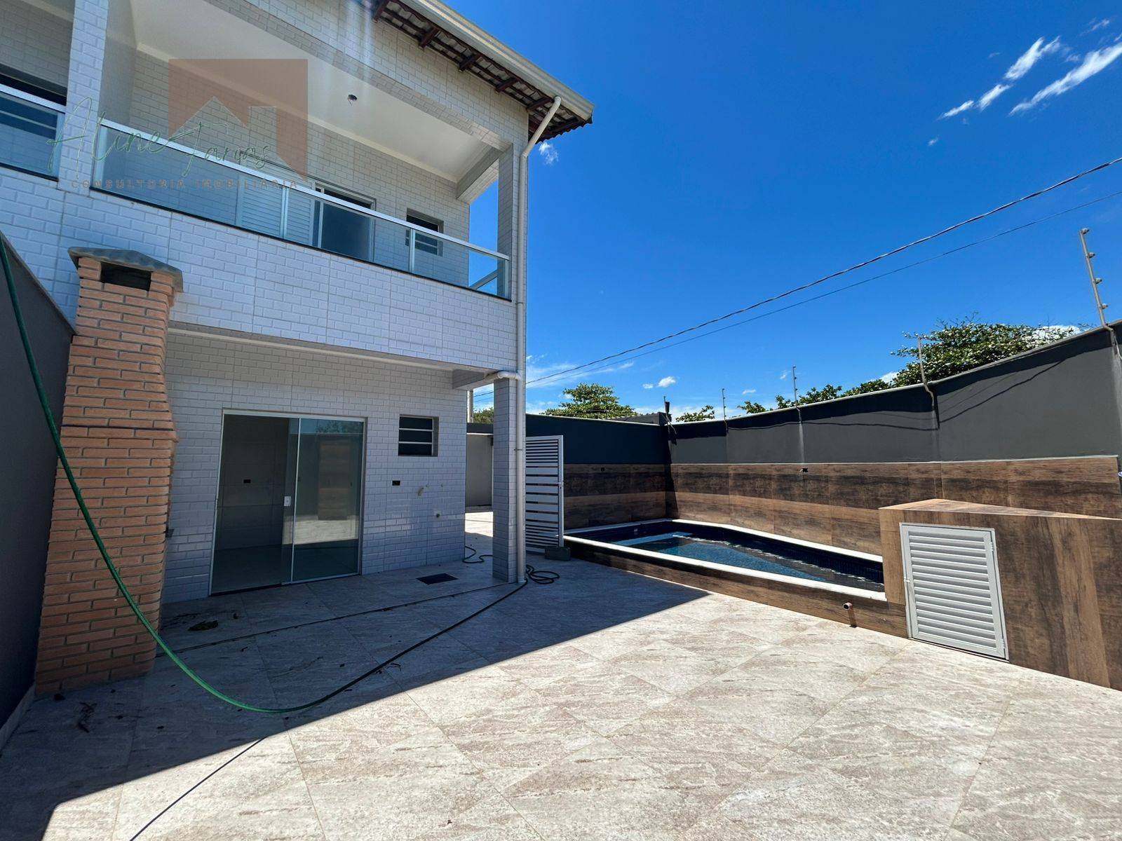 Cada sobrado possui quintal privativo com piscina individual, ducha, espaço gourmet com churrasqueira e pia.