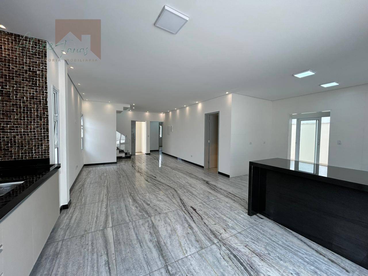 Sala integrada à cozinha e a área gourmet